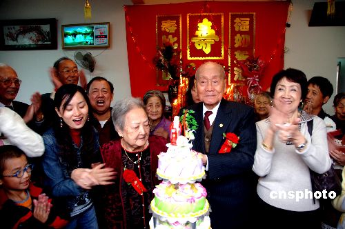 10時30分許,拜壽開始,潘祖培與妻子端坐在廳堂,接受親友們叩拜祝福。叩拜者中,年齡最大的是潘老當年教過的福州英華中學學生,已經(jīng)86歲;而最小的族親才數(shù)月大。“看到他們,倍感親切。”潘祖培說。
