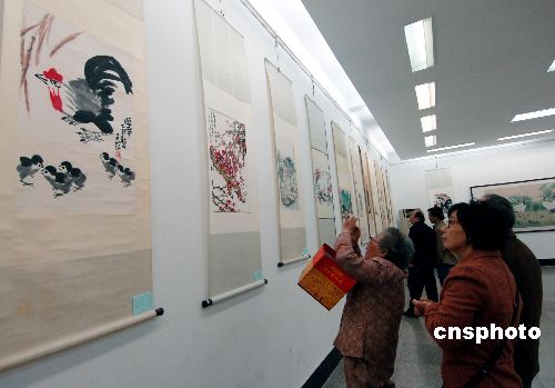 中新社福州一月十一日電 (張彩林)“二00八迎新春大型中國書畫藝術作品展覽”今日在福州開幕,來自北京、深圳、臺灣等地的十余位海峽兩岸資深收藏家精心收藏的近兩百幅書畫作品閃亮登場。