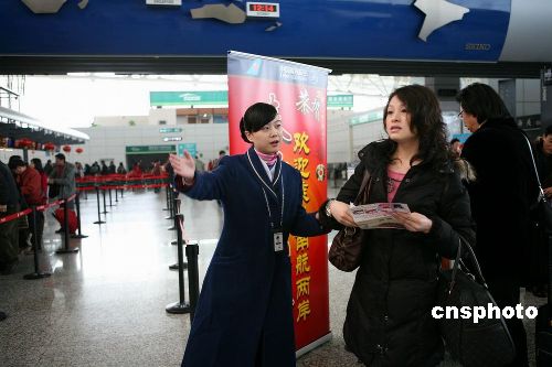 中新網2月13日電 民航總局網站最新消息,2月2日,2008年兩岸春節包機順利首航。這是繼2003年、2005年、2006年、2007年之后的第5次兩岸春節包機,兩岸共有12家航空公司總計安排執行94個往返航班,航點仍為北京、上海、廣州、廈門和臺北、高雄6個城市。