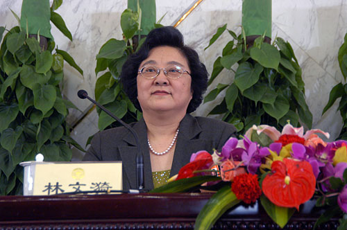 2008年3月6日15時(shí),人民大會(huì)堂新聞發(fā)布廳舉行全國(guó)政協(xié)十一屆一次會(huì)議記者招待會(huì),主題是“民主黨派中央主席談多黨合作”。圖為臺(tái)盟中央主席林文漪。新華網(wǎng) 郭毅 攝