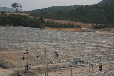 11日,筆者在該園核心區看到,5000平方米的標準玻璃溫室已經基本完成鋼架部分,計劃在5月份建成投入使用。建成后漳浦臺灣農民創業園標準玻璃溫室將達到5萬平方米。目前已有臺灣專業培育蝴蝶蘭的鉅寶蘭園等農戶等著入駐。 (邱耀斌 攝影報道)