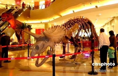 中新網揚州4月11日電:(記者 崔佳明)為慶祝中國大陸首座“全生活廣場”——揚州京華城開業一周年,今日起舉辦“喜迎周年慶 重返侏羅紀” 大型恐龍展,呈現數十件獨特珍貴的恐龍及其他動植物化石,包括恐龍化石骨架、恐龍典型標本模型展覽、生蛋龍和三角龍模型、霸王龍等多組大型恐龍。