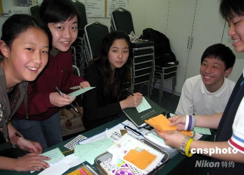 五月初,常住上海的臺商子女與大陸同齡人在課余時間共同學習滬上熱門的“卡內基青少年溝通和人際關系課程”。圖為兩岸學子當起“小助教”,在課堂上現場“備課”,他們在大陸輔導教師的幫助下,向數十位海峽兩岸的陌生學弟學妹傳授人際溝通的心得。據介紹,隨著大陸經濟飛速發展,近年來兩岸青少年的發展已面臨相似的“瓶頸”,面對考試、升學、人際關系等多重壓力,如何使年輕一代克服與外界溝通的某些障礙成為兩岸教育界關注的熱點。 中新社發 許曉青 攝