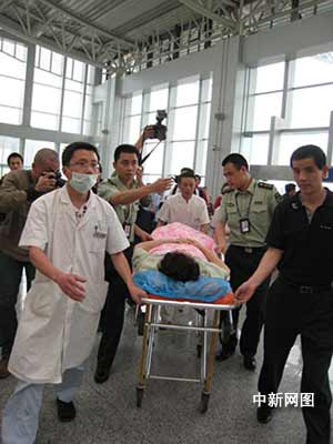 在四川地震中受傷的85歲臺胞搭包機返臺(圖)