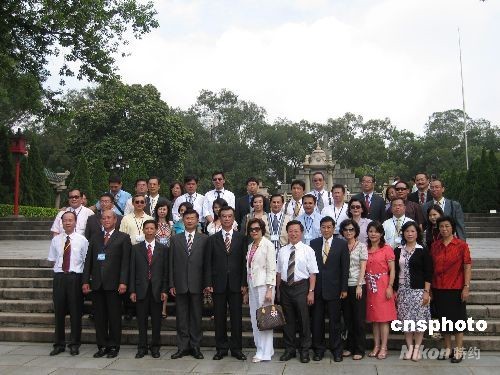 7月13日,高雄市議會及各界人士廣州訪問團拜謁廣州黃花崗七十二烈士墓、中國國民黨“一大”舊址。圖為訪問團在烈士墓前合影。 中新社發(fā) 郭軍 攝