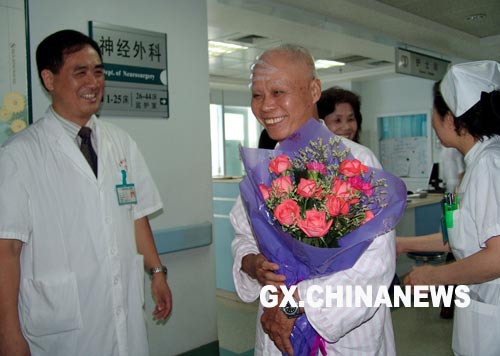 中新廣西網10月7日電(譚德軍 林艷華)“這里的治療比臺灣還好!”發出此番感慨的是今日從廣西壯族自治區人民醫院神經外科康復出院的臺灣游客黃先生,臨出院時,該院神經外科還專門給他贈送了一束祝福鮮花。
