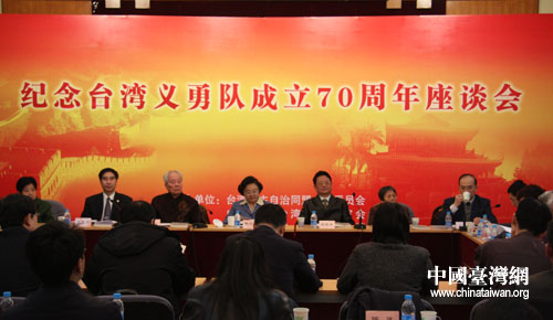中國臺灣網2月20日北京消息 今天上午,紀念臺灣義勇隊成立70周年座談會在北京召開。全國人大常委、臺盟中央常務副主席汪毅夫在座談會上指出:臺灣義勇隊是臺灣同胞投身祖國抗戰的杰出代表,是海峽兩岸同胞并肩戰斗、共御外敵的歷史見證。當前,兩岸關系發展邁入歷史新起點,兩岸骨肉同胞更應銘記歷史,將反侵略斗爭中形成的民族精神和民族情感作為促進兩岸關系和平發展的精神紐帶,戮力同心,開創兩岸關系和平發展的新局面。
