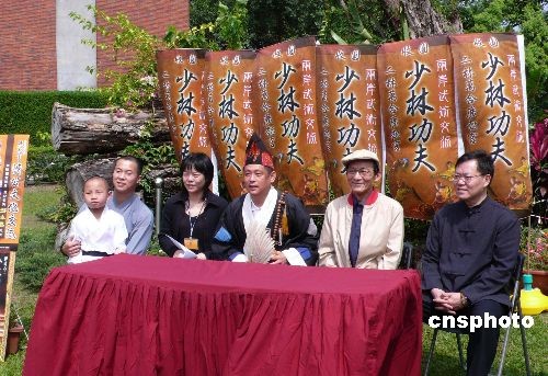 在臺北劍潭青年活動中心舉行的記者會上,北京元鴻少林功夫團現場表演了鐵頭功、童子功、飛針等中國傳統武術,贏得陣陣喝彩。