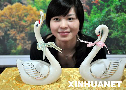 近日,泉州市戴云文化傳播有限公司和臺灣聯宏科技聯袂研制生產出白瓷“天鵝”酒瓶,表現了兩岸同胞血脈相連、故土難離之情。日前,首批“天鵝”酒瓶已開始銷往臺灣。 新華社記者 康淼 攝