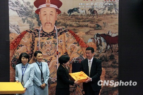 10月6日,北京故宮博物院院長鄭欣淼向臺北故宮博物院致贈(zèng)《清乾隆朝清文大藏經(jīng)》,臺北故宮院長周功鑫回贈(zèng)《清康熙朝藏文龍藏經(jīng)》。兩岸故宮60年來首度合辦的展覽“雍正——清世宗文物大展”,7日將在臺北故宮博物院開展,這是兩岸故宮開啟“務(wù)實(shí)交流”后,交出的首張亮眼的成績單。中新社發(fā) 黃少華 攝