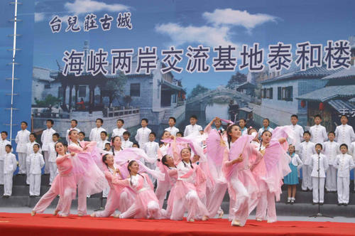 奠基儀式上,百名少年兒童朗誦了中華經典詩文《論語》、《少年中國說》等,放飛了和平鴿和象征中華騰飛的“中華龍”風箏。奠基儀式舉行前,中央和省、市領導及連戰先生等還參觀了臺兒莊大戰紀念館,觀賞了在古城進行的地方柳琴戲和運河大鼓等表演,并題詞、植樹紀念。奠基儀式結束后,舉行了海峽兩岸交流基地旅游合作簽約儀式。(記者 劉成友 趙慧 張巖)