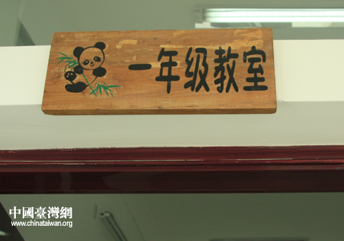 學(xué)校教室門牌上的熊貓圖案,體現(xiàn)雅安與臺(tái)灣的熊貓情節(jié)。(中國(guó)臺(tái)灣網(wǎng) 高斯斯 攝)