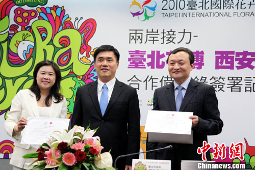“兩岸接力——臺北花博西安世園合作備忘錄”22日下午在此間簽署,兩市約定將共同在文化與花藝展開密切的交流與合作,在兩個博覽會期間互相參展,并協助對方舉辦“城市文化日”或“文化周”等活動,以傳揚綠色理念。