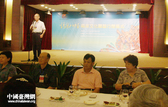 臺灣嘉賓參訪團團長張京育在致詞時表示,這次情系八桂兩岸文化聯誼行活動,是一次成功的文化交流之旅,臺灣嘉賓們領略了廣西的山水人情、歷史文化。他說,每個人都有三個血緣:一是生命的血緣,由父母所給,向子女遺傳;二是自然的血緣,即我們從大自然中獲得維持生命所需要的物質,第三個是精神文化方面的血緣,這是人類所獨有,也是最重要的血緣,并將代代相傳。這次所有臺灣嘉賓一行,領略到了大陸對中華文化的保存與發揚。他表示,希望“情系”系列兩岸文化交流活動,能一直延續下去,綿延不絕。