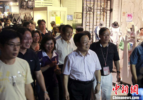 9月3日晚間,蔡武一行在臺中市體驗逢甲夜市。應臺灣財團法人沈春池文教基金會邀請,中華文化聯誼會名譽會長蔡武率中華文化聯誼會交流訪問團抵臺訪問。中新社記者 劉舒凌 攝