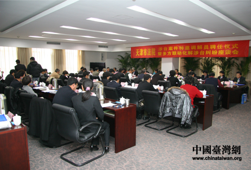 中國臺灣網(wǎng)12月7日天津消息 天津市高級人民法院12月6日舉行涉臺案件特邀調(diào)解員聘任儀式,并召開多方聯(lián)動化解涉臺糾紛座談會,受聘擔任涉臺案件特邀調(diào)解員的9名臺胞正式上崗。天津臺胞、臺企協(xié)會以及天津市臺辦、區(qū)縣臺辦代表在座談會上,對天津法院推出的依法保護臺胞臺資企業(yè)合法權(quán)益一系列舉措給予充分肯定,對全市法院涉臺審判工作以及涉臺審判協(xié)調(diào)機制提出中肯的意見和建議。