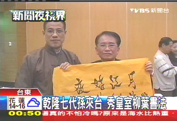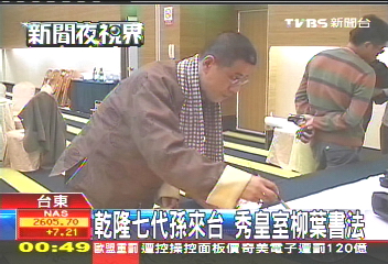 中國臺灣網(wǎng)12月9日消息 據(jù)臺灣TVBS電視臺報道,清朝皇帝乾隆第7代嫡孫愛新覺羅·恒紹12月8日隨吉林文化交流團赴臺訪問,作為書法家的他,向島內民眾展示了他特殊的皇家柳葉體書法。