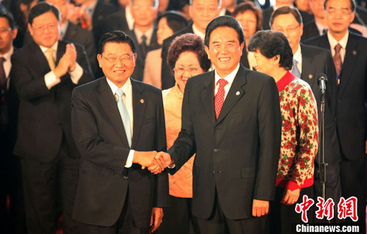 海協會會長陳云林20日率海協會代表團抵達臺北,與江丙坤進行2008年以來的第六次兩會負責人會談。江丙坤在歡迎儀式上回顧兩岸關系的發展,指出這兩年多來透過兩會的努力,一共簽署14項協議,它的成果已經逐漸展開。