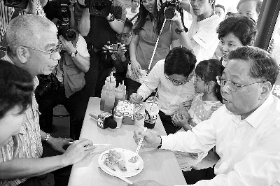 5月5日至10日,黃小晶省長率福建省經貿文化交流團赴臺“走親訪友做生意”,這是他在臺南蚵蠣煎小吃店與當地民眾話家常。陳榮富 攝