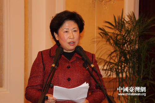 招待會(huì)上,中共中央統(tǒng)戰(zhàn)部副部長尤蘭田代表中央統(tǒng)戰(zhàn)部和杜青林部長,發(fā)表了熱情洋溢的講話。她充分肯定了黃埔軍校同學(xué)會(huì)在過去一年發(fā)揮自身優(yōu)勢,對(duì)臺(tái)工作所取得的顯著成績。她表示,希望在新的一年里,黃埔軍校同學(xué)會(huì)繼續(xù)遵循中央對(duì)臺(tái)工作的大政方針,牢牢把握兩岸關(guān)系和平發(fā)展主題,立足自身特點(diǎn)和優(yōu)勢,拓展思路,構(gòu)建載體,打造亮點(diǎn),培育品牌,提升效能,廣泛團(tuán)結(jié)海內(nèi)外黃埔同學(xué)和親友,為開創(chuàng)兩岸關(guān)系和平發(fā)展新局面、推進(jìn)祖國和平統(tǒng)一大業(yè)作出新的貢獻(xiàn)。