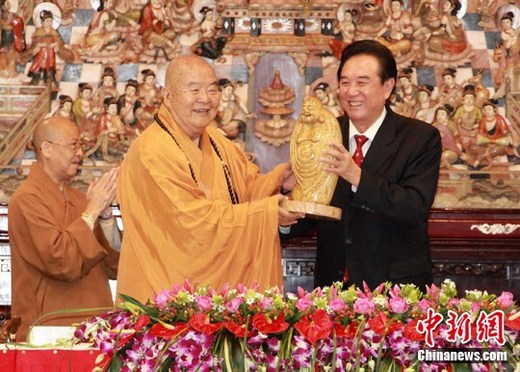 陳云林還對(duì)星云大師多年來(lái)奔走兩岸的積極作為表示感謝。他說(shuō):“兩岸關(guān)系能夠有今天的大好形勢(shì),我們非常感謝大師的努力。這些年來(lái),兩岸間許多重要的交流活動(dòng)都得到了大師鼎力相助,我們心存敬意。”