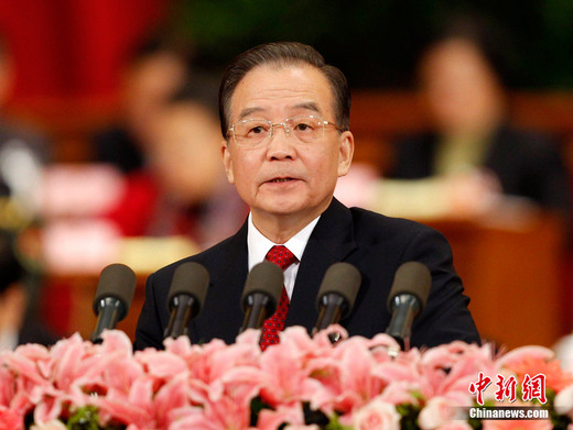 3月5日上午9時,十一屆全國人大四次會議在人民大會堂開幕。國務院總理溫家寶代表大會作政府工作報告。中新社記者 盛佳鵬 攝