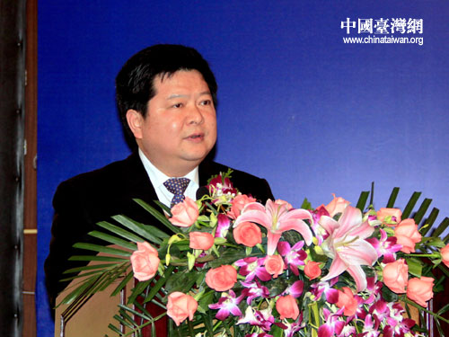 國(guó)務(wù)院臺(tái)灣事務(wù)辦公室主任助理龍明彪出席西洽會(huì)臺(tái)灣中小企業(yè)西部投資懇談會(huì)并致辭。(陜西臺(tái)辦 張群莉 攝)