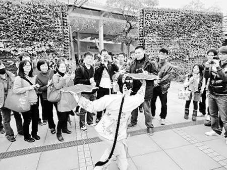 臺北觀眾被西安民間藝術家精彩的技藝深深吸引。 馮力文 攝