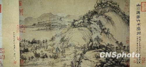 3月14日,十一屆全國人大三次會議閉幕,溫家寶總理答中外記者問。溫家寶總理在回答臺灣記者提問時講了一個故事:“元朝有一位畫家叫黃公望,他畫了一幅著名的《富春山居圖》,79歲完成,完成之后不久就去世了。幾百年來,這幅畫輾轉流失,但現在我知道,一半放在杭州博物館,一半放在臺北故宮博物院,我希望兩幅畫什么時候能合成一幅畫。畫是如此,人何以堪。”這是《富春山居圖》... 中新社發 楊可佳 攝