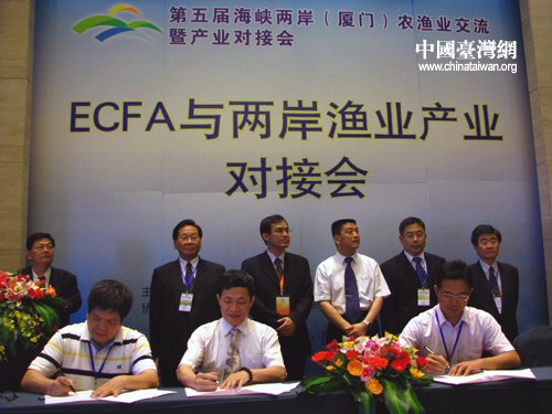 ECFA與兩岸漁業(yè)產(chǎn)業(yè)對接會項目簽約現(xiàn)場。(中國臺灣網(wǎng) 馬迪 攝)