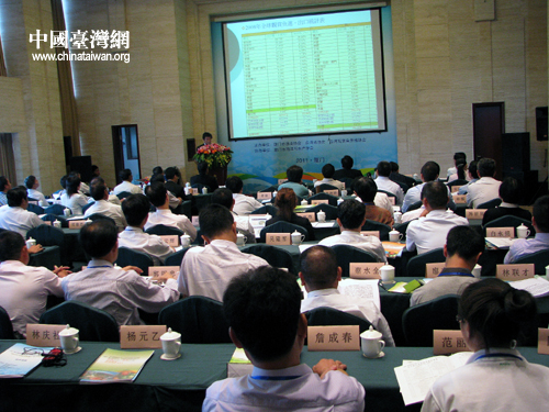 ECFA與兩岸漁業(yè)產(chǎn)業(yè)對接會現(xiàn)場,嘉賓正在發(fā)言。(中國臺灣網(wǎng) 馬迪 攝)