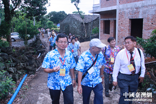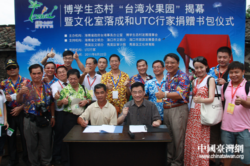 上午,記者們來到海口市秀英區(qū)永興鎮(zhèn)博學(xué)生態(tài)文明村參觀。據(jù)村長介紹,2009年11月,博學(xué)村在村里第一個大學(xué)生陳統(tǒng)奎的組織帶領(lǐng)下,確定了將博學(xué)村從一個傳統(tǒng)農(nóng)村轉(zhuǎn)型為一個結(jié)合有機(jī)農(nóng)業(yè)、生態(tài)保育和休閑體驗(yàn)為一體的教育基地的發(fā)展愿景。2010年6月2日,博學(xué)村與臺灣桃米村簽署姐妹村協(xié)議,成為兩岸第一例姐妹村,堪稱瓊臺基層交流的典范。同天,由海南省臺辦牽頭資助的臺灣水果園也正式啟動建設(shè)。