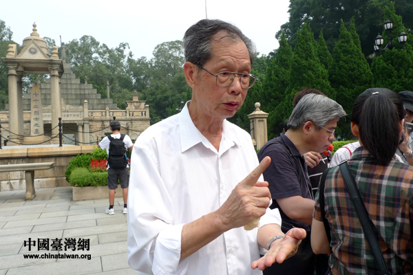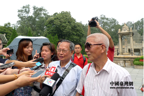 同盟會會員溫生才之孫溫國杰(左)向記者講述先輩起義經過(中國臺灣網 李徽 攝)