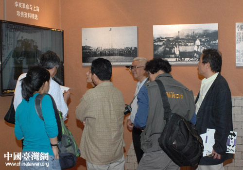 與會嘉賓參觀辛亥革命文獻(xiàn)文物展(圖片來源:上海市臺辦)