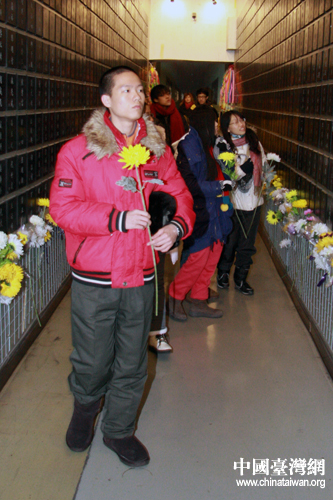 臺(tái)灣青年學(xué)生向被731部隊(duì)殘害致死的殉難者敬獻(xiàn)花束。(中國臺(tái)灣網(wǎng) 于斯文 攝)