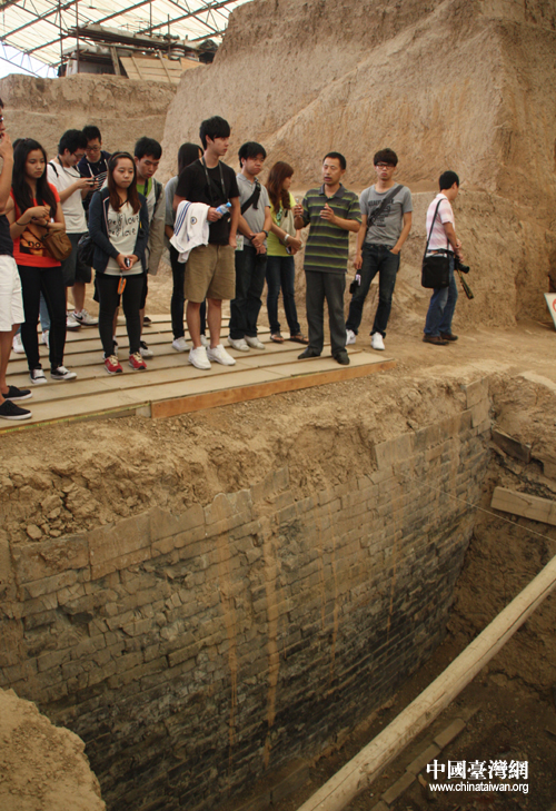 中國臺灣網(wǎng)8月17日西安消息  臺灣青年學(xué)生交流團(tuán)“北京—西安”之旅漸漸步入尾聲, 8月15日,兩岸學(xué)子來到西安鳳棲原張安世家族墓考古工地,實(shí)地探訪這位西漢重臣宏偉的家族墓藏,親身體驗(yàn)2010年“全國十大考古發(fā)現(xiàn)”的挖掘現(xiàn)場。