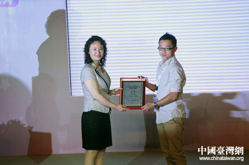 中國(guó)臺(tái)灣網(wǎng)總經(jīng)理兼總編輯劉曉輝女士為獲獎(jiǎng)?wù)哳C獎(jiǎng)。(中國(guó)臺(tái)灣網(wǎng) 王怡然 攝)