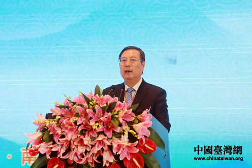 海峽兩岸企業家紫金山峰會19日上午9時在南京紫金山莊會議中心紫金廳舉行開幕式。全國政協副主席、全國工商聯主席黃孟復出席開幕式并致辭。(中國臺灣網 王偉 攝)