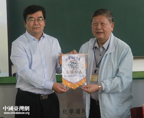 西安八十五中學(xué)接受臺(tái)灣省教育會(huì)贈(zèng)送的旗子。(中國(guó)臺(tái)灣網(wǎng) 孟雅詩(shī) 攝)