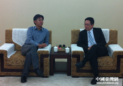北京市臺辦副巡視員杜德平會見蔡正元。(北京通訊員 郭寧 攝)