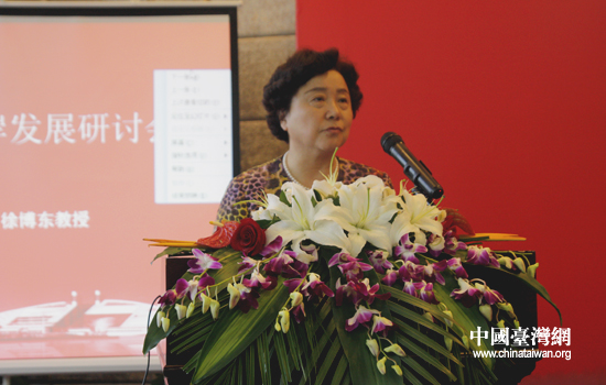 海峽兩岸關系協會副會長兼浙大臺灣研究所所長王在希主持研討會。(中國臺灣網 高斯斯 攝)