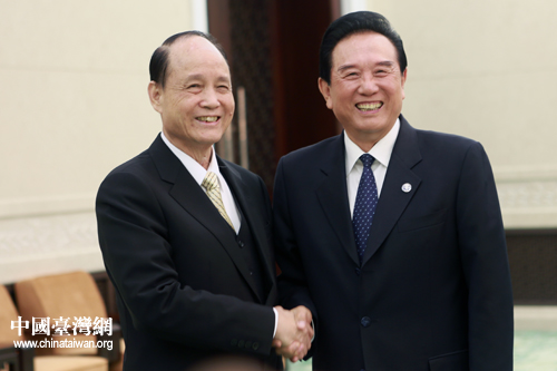 16日晚,海協(xié)會(huì)會(huì)長(zhǎng)陳云林(右)會(huì)見了首次來大陸的臺(tái)灣海基會(huì)新任董事長(zhǎng)林中森一行。(中國(guó)臺(tái)灣網(wǎng) 陳佳慧 攝)