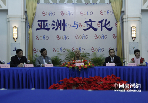 當(dāng)天下午,星云大師在瓊海博鰲與企業(yè)界、社會(huì)界人士,圍繞亞洲與文化召開圓桌會(huì)議,進(jìn)行深入交流。會(huì)議現(xiàn)場,一直提倡在博鰲設(shè)立亞洲文化相關(guān)機(jī)構(gòu)或組織的星云大師,捐助了100萬元人民幣作為啟動(dòng)資金,并留下一幅“博鰲亞洲文化”的墨寶。星云大師希望借此推動(dòng)亞洲各項(xiàng)產(chǎn)業(yè)的發(fā)展和文化創(chuàng)新,促進(jìn)亞洲各國文化建設(shè)和文化交流,致力于亞洲文化事業(yè)的多元化發(fā)展,開創(chuàng)性的將文化事業(yè)和經(jīng)濟(jì)全球化的發(fā)展融合于一體。(中國臺(tái)灣網(wǎng)記者 馬萌)