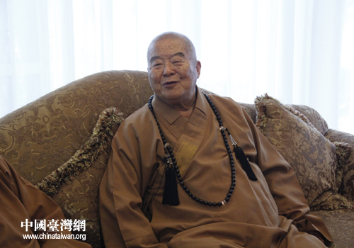 星云大師接受媒體采訪。(中國臺灣網(wǎng) 馬萌 攝)