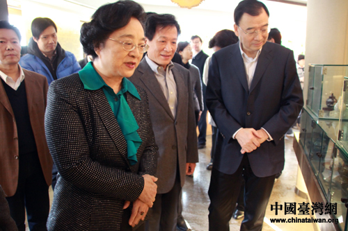 全國政協(xié)副主席、臺盟中央主席林文漪等參觀欣賞天福茶文化館內(nèi)的精美茶具。(中國臺灣網(wǎng) 王怡然 攝)