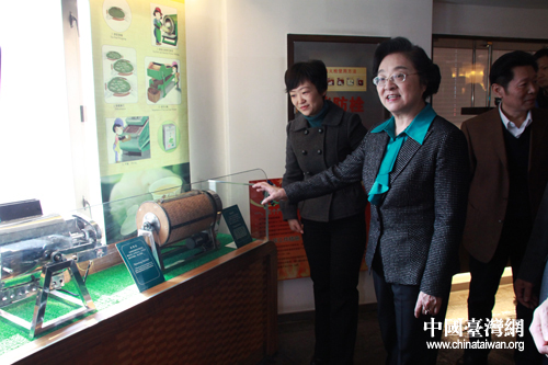 林文漪等參觀天福茶文化館內(nèi)的茶葉生產(chǎn)加工模型。(中國臺灣網(wǎng) 王怡然 攝)