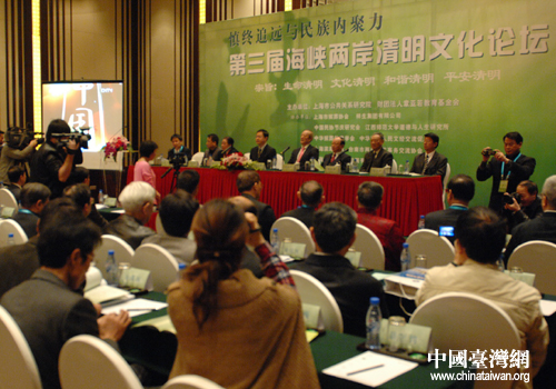 中國(guó)臺(tái)灣網(wǎng)3月25日上海消息 3月23日,由上海市公共關(guān)系研究院和臺(tái)灣章亞若教育基金會(huì)聯(lián)合主辦的“第三屆海峽兩岸清明文化論壇”在上海舉行。中國(guó)國(guó)民黨副主席、章亞若教育基金會(huì)董事長(zhǎng)蔣孝嚴(yán),臺(tái)南市公共事務(wù)交流協(xié)會(huì)代表等海峽兩岸一百多位嘉賓、學(xué)者齊聚一堂,共同探討具有中華傳統(tǒng)特色的清明文化。