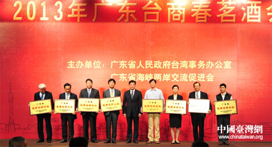 中國臺灣網(wǎng)3月28日廣州消息 3月27日,廣東省臺辦、廣東省海峽兩岸交流促進會在廣州舉辦2013年廣東臺商春茗酒會,省委常委、統(tǒng)戰(zhàn)部長林雄,省人大常委會副主任雷于藍,副省長招玉芳,省政協(xié)副主席王珣章等出席活動。省直有關單位代表、各地級以上市臺辦負責人及臺商代表共380余人參加活動。