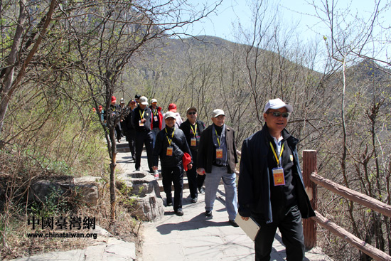 4月10日上午,由近70位臺灣統(tǒng)派人士和退役將領(lǐng)組成的參訪團(tuán)一行來到焦作市修武縣,參觀世界地質(zhì)公園云臺山。(中國臺灣網(wǎng) 李丹 攝)