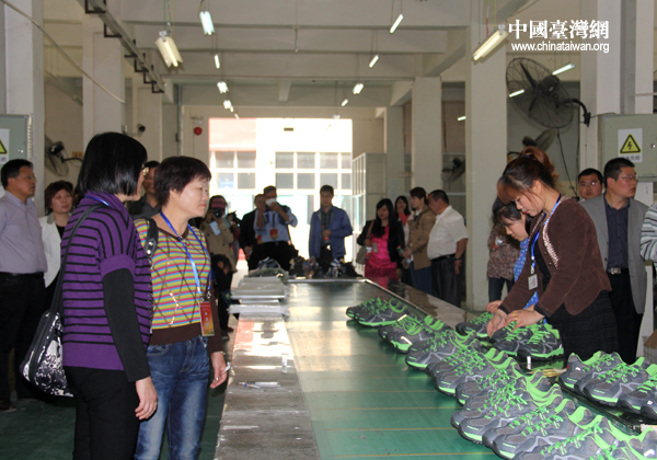 看到工人們正秩序井然的在生產線上作業, 一雙雙成品鞋被生產出來,來自臺灣天眼日報的田先生非常感慨。他說,現在大陸的加工業很發達,全世界都在用大陸制造的產品,因為成本原料成本比較低,價格上很占優勢。他指著自己的褲子說:“我這褲子就是大陸生產的。”